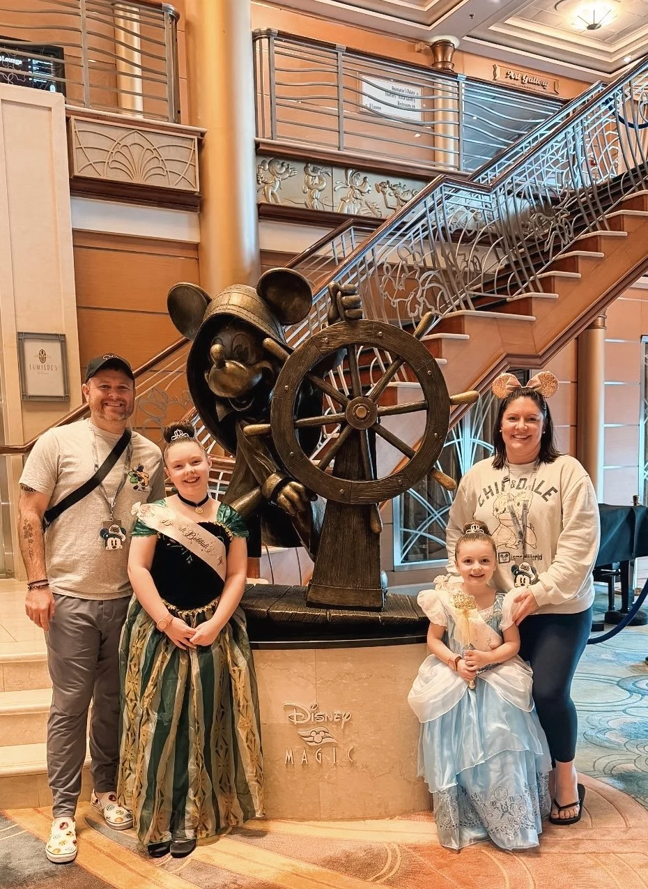 Quick facts about us: Traveled to 28 countries and counting, Lived in 3 countries, Homeschool Family, Cruise Enthusiasts (including 5 Disney Cruises). The first one was in 2019 on the Fantasy that began it ALL., Experienced both Disneyland Paris and Walt Disney World, In love with Disney characters, magic, family memories, and creating adventures, Favorite Characters: Sara (Chip & Dale/Tigger), Devin (Goofy/Mickey), Paisley(Minnie/Pocahontas), Chloe(Minnie/Cinderella), Helping families travel stress free, with faith, FUN, and purpose.